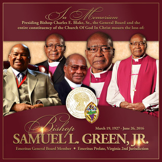 Bishop Samuel L. Green, Jr. was born in Norfolk, Virginia on March 19, 1927 to the late Deacon Samuel L. Green, Sr. and the late Mrs. Leosia P. Green. He resides in Hampton, Virginia and was marred to the late Mrs. Vivian Frazier Green for 60 years, and to their union were born nine children; Jacquelin G. Holmes, Norvice G. Sellers, Dwight L, Samuel L. III, Nathalie G. Neal, Naomi E. Ward, Deborah E. Golden, Phillip X., and Michael D. Bishop Green is presently married to the Mrs. LueJinnie Flemming Green. Bishop is a graduate of Booker T. Washington High School and attended Norfolk State and Old Dominion Universities. In 1960, Bishop Green was appointed to his pastorate, St. Johns Church of God in Christ in Newport News, Virginia. In 1971, Bishop was appointed by the General Board Presidium of the Church of God in Christ, Inc. to the office of Jurisdictional Prelate for the Second Jurisdiction, State of Virginia. He was named successor to his mentor and father in gospel, the late Bishop D. Lawrence Williams. In 1973, he received a Honorary Doctorate of Divinity Degree from Trinity Hall College and Seminary. In 1984, Bishop was elected as a member of the General Board Presidium, Church of God in Christ, Inc. In 1995, he received from the Norfolk Seminary and college the degree of Bachelor of Arts in Biblical Studies and in 2000, the degree of Master of Divinity with all the honors, rights and privileges appertaining thereto. His works include:
